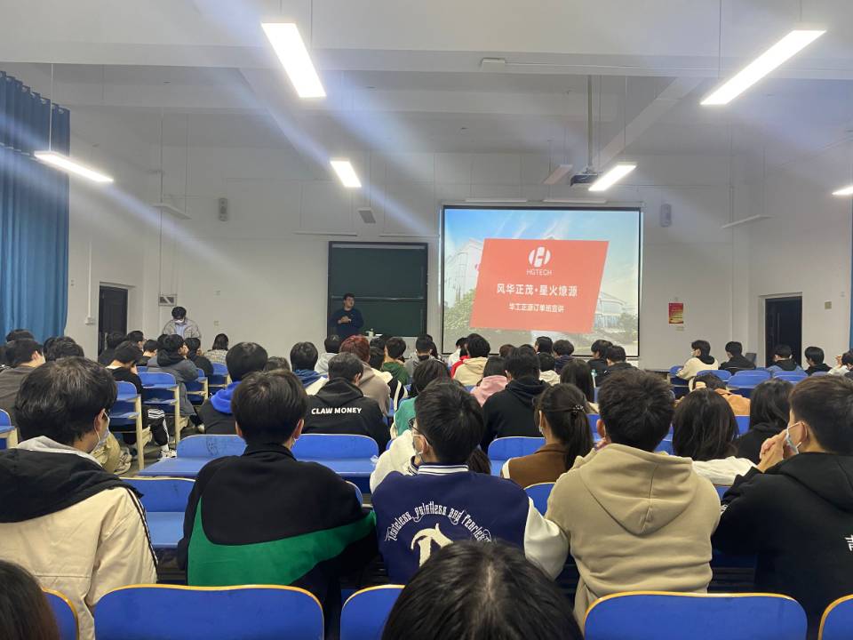 宣讲会上,华工正源总经理苟超越从公司介绍、订单班建立、未来职业发展等方面作了详细讲解。华工正源致力于为光通信领域提供全联接的产品和技术方案,是中国最具影响力的光通信器件供应商之一。讲解到华工正源订单班不收取任何费用,就业稳定且不强制员工毕业去向,同时奖学金等福利多、职业通道广时,现场气氛热烈。电子2201班张诚等同学们主动询问“公司内部工作环境怎么样呢?”宣讲人现场为同学们分享了公司工作的视频,吸引了更多员工们的兴趣。在结尾互动环节,宣讲人就员工们担心的订单班就业面是否过窄、具体工作岗位等问题进行了逐一解答。