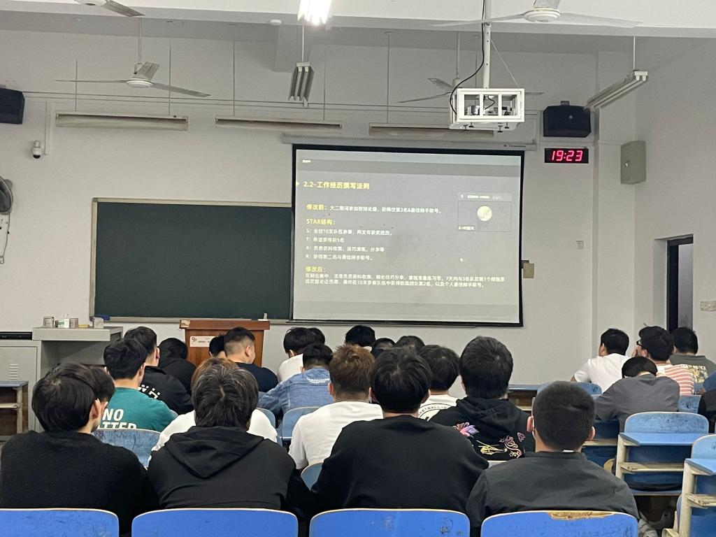 讲座中,同学们仔细聆听,认真记录,积极互动,学习到了丰富的实用求职技巧。本次讲座旨在让同学们了解当前就业形势,明确就业市场需求,掌握就业求职实战技巧,帮助同学提升求职能力,以期让同学们在未来求职路上获得满意的工作。