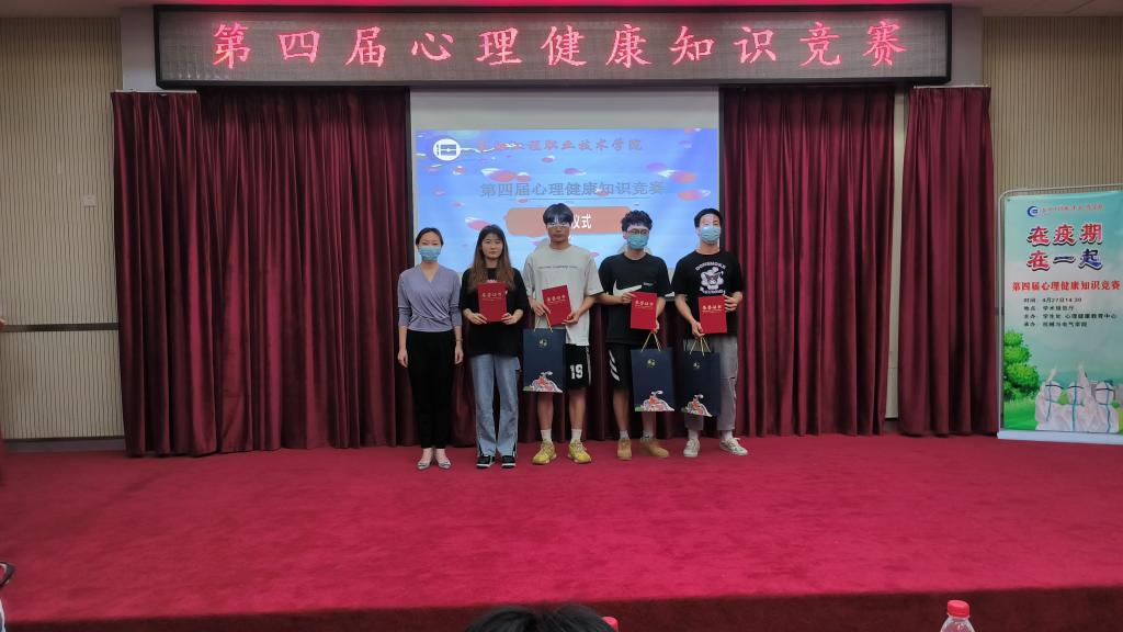 竞赛紧扣心理健康知识,设置了必答题、抢答题、风险题三个题型。选手们各显身手、奋勇争先,助阵嘉宾更是热情高涨,掌声不断,比赛现场气氛紧张热烈。经过角逐,水利与电力公司代表队青鸾队在参赛队伍中脱颖而出,荣获一等奖,其他各参赛队伍分别荣获二、三等奖和优秀奖。在场的领导为获奖选手颁发了证书和奖品,并与选手们合影留念。