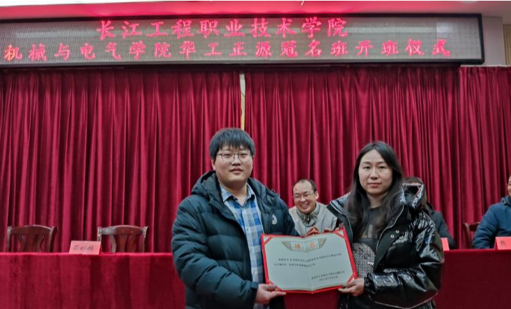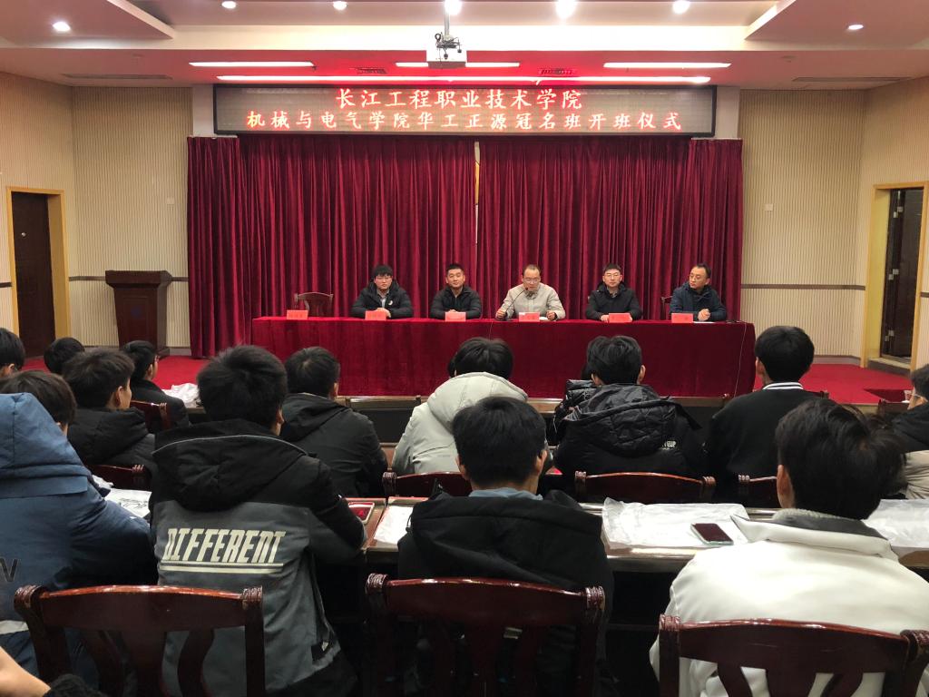 12月27日,机械与电气公司在学术报告厅举行校企合作冠名班“华工正源班”开班仪式,冠名班全体员工43人参加开班仪式,仪式由机械与电气公司副经理熊巍主持。武汉华工正源光子技术有限公司人力资源部高级经理张涛、校企合作部经理苟超越、校企合作部主管梅枝喜、公司对外合作交流处处长李太星、机械与电气公司经理李丰、副经理熊巍参加仪式。